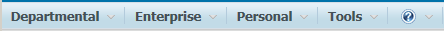 Die standardmäßige Leiste für das Content ServerHauptmenü enthält die Menüs Persönlich, Unternehmensweit, Extras und Hilfe. Die ActiveView-Hauptmenü-Leistenüberschreibungen können verwendet werden, um ein Hauptmenü oder Objekte im Menü hinzuzufügen, zu bearbeiten oder zu löschen. Dies kann alles mithilfe der Syntax in den folgenden Beispiele erzielt werden. Die ActiveView-Hauptmenü-Leistenüberschreibung unterstützt zudem das Überschreiben der zusätzlichen Menüs, die beim Durchsuchen von Projekte und Aufgabenlisten hinzugefügt wurden.