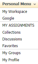 Das folgende Beispiel zeigt, wie man den Namen des Menüs Persönlich und einen Objektname ändert, ein Google-Objekt zu Position 2 in der Liste und Trennzeichen zu Position 8 in der Liste hinzufügt und die Standardaktion für das Objekt Sammlungen ändert.